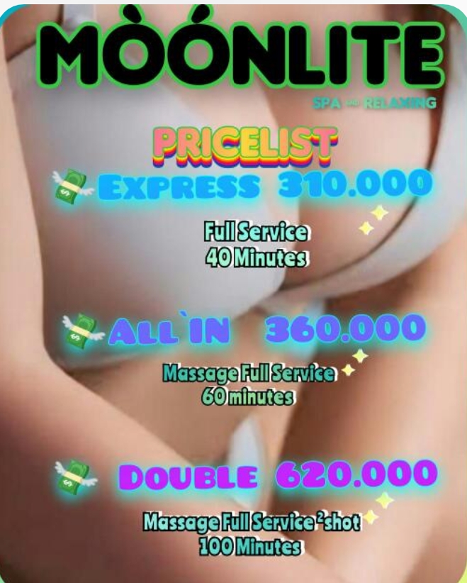 Kecurigaan warga diperkuat dengan beredarnya brosur digital bertuliskan “MoonLite Spa & Relaxing Pricelist” di media sosial, yang mencantumkan berbagai layanan bertajuk “Full Service” dengan tarif mulai dari Rp310.000 hingga Rp620.000. Dalam daftar itu, disebutkan pula durasi layanan dari 40 hingga 100 menit, dengan istilah “double” dan “2 shot” yang menimbulkan interpretasi negatif di kalangan masyarakat.