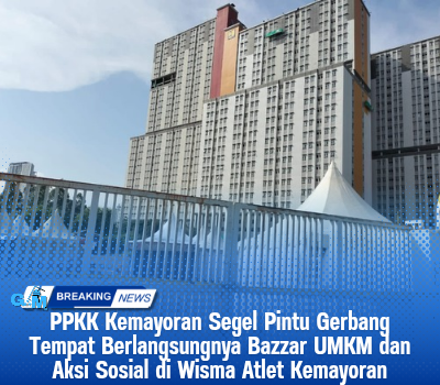 Jakarta GM – Pintu gerbang masuk arena Bazzar UMKM yang bertempat di Wisma Atlet Kemayoran disegel menggunakan rantai besi dengan…