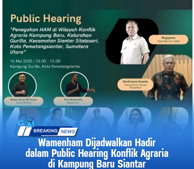 Siantar, GM – Wakil Menteri HAM RI, Mugiyanto, dijadwalkan menghadiri Public Hearing bertajuk “Penegakan HAM di Wilayah Konflik Agraria Kampung…